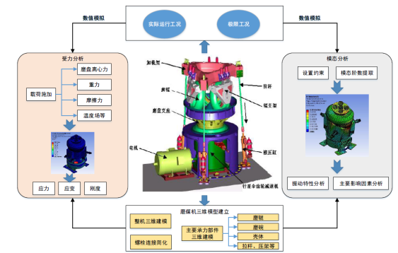 面向能源行业传统装备,借助结构分析、液压主动变载及耐磨材料优化等工作的开展,旨在解决其在运行过程中的频繁振动等问题。通过探讨引起结构振动、螺栓断裂以及耐磨件磨损过快等故障的原因和机理,确定诱发主要故障模式的关键因素。在此基础上,建立加载力和反作用力液压精确控制模型,实现主动变加载功能,将振动等不理因素降低到合理的范围内;同时,借助新材料的组分与结构优化工艺提高关键部件的耐磨性能,从而缩小引发振动的来源。构建关键部件振动信息监测及关键运行参数获取系统,实现运行参数优化,达到设备长期运行的稳定及可靠。
