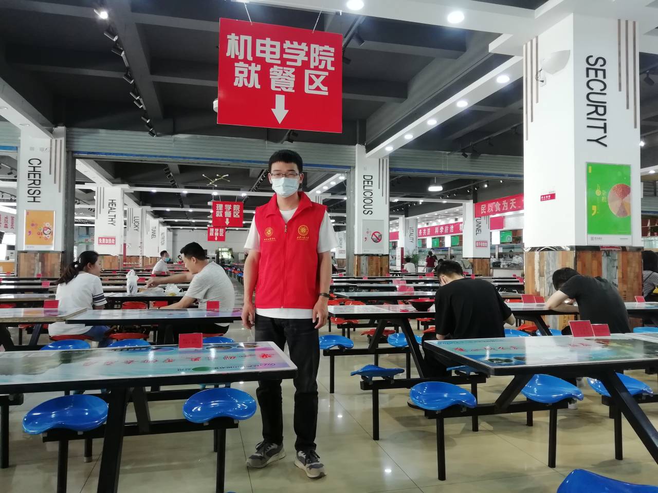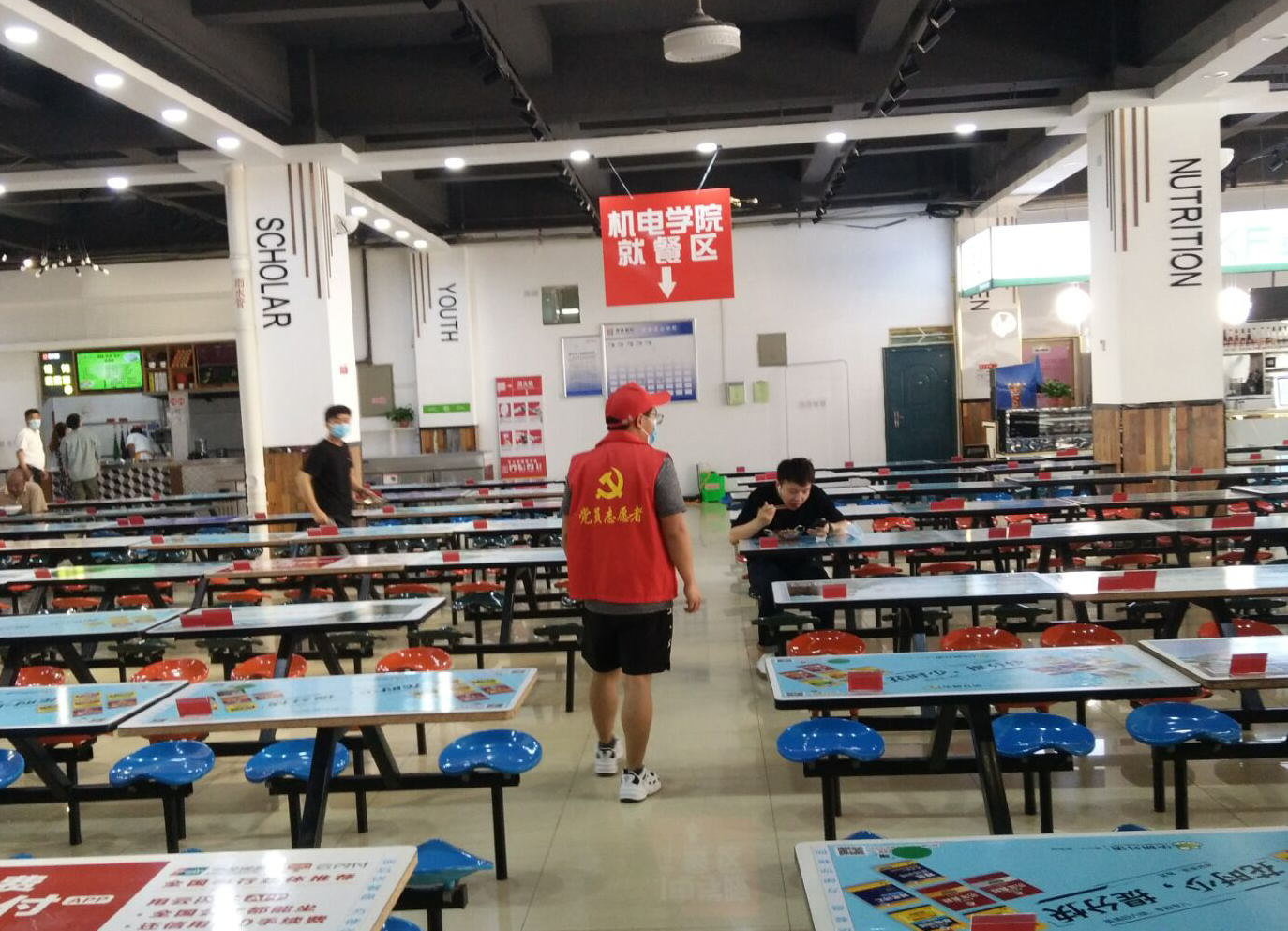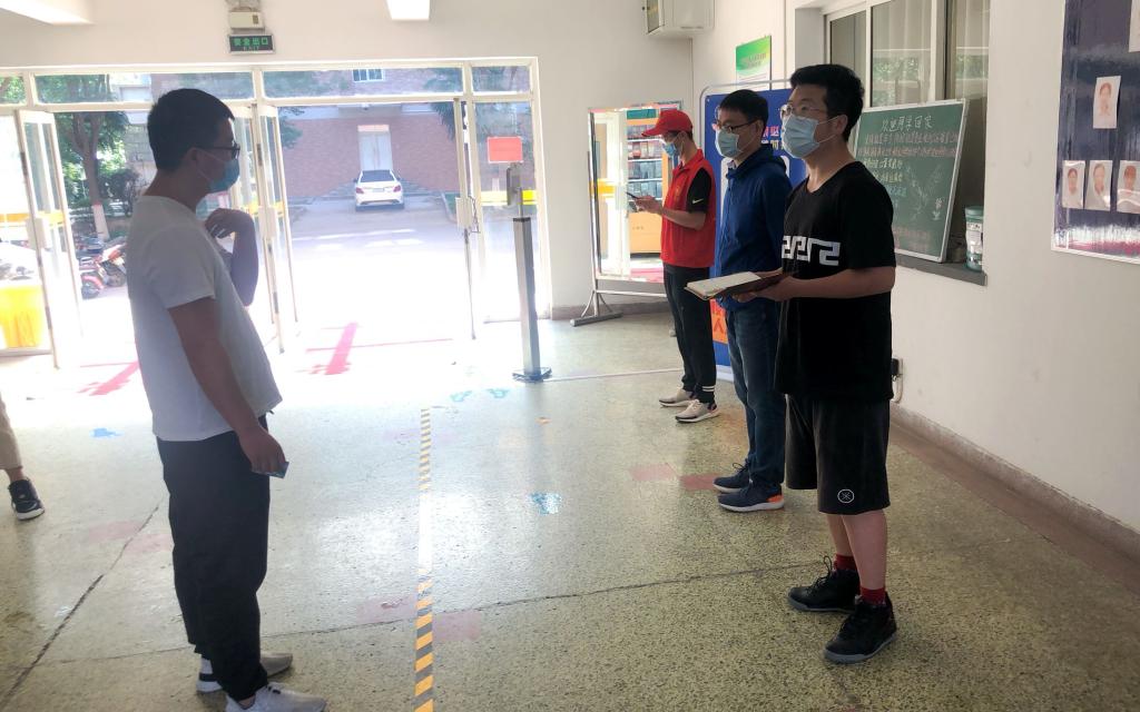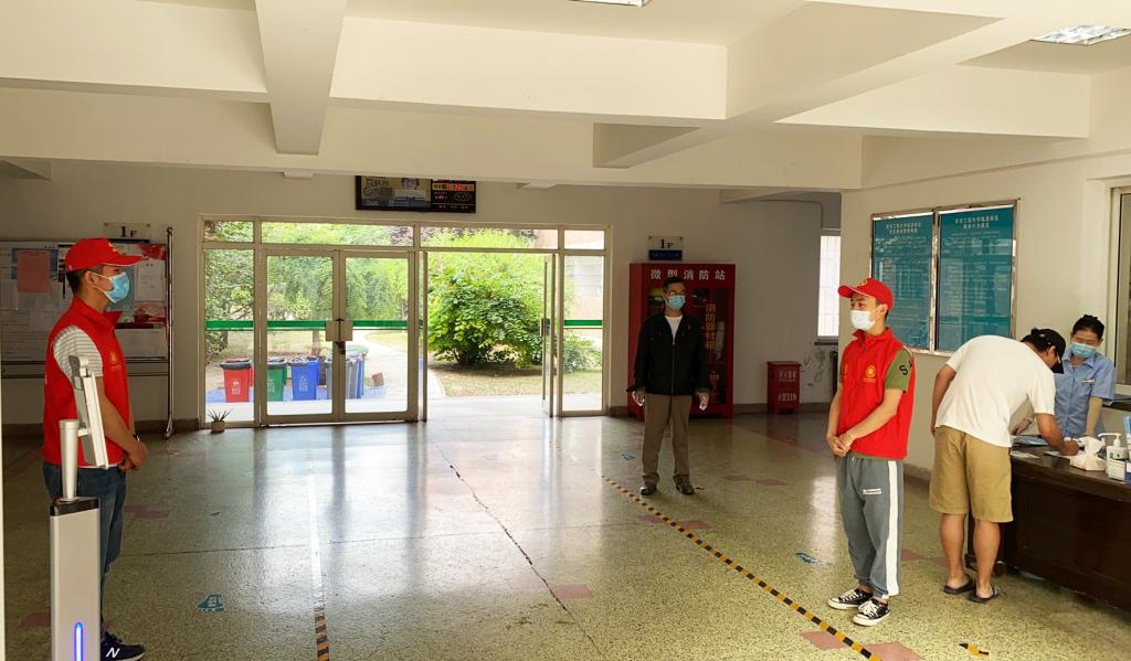 初夏时节,绿意盎然,自本科毕业生返校复学以来,工程大临潼校区恢复了生机和活力,同时还多了一道亮丽的风景——“红马甲”党员先锋岗,他们是机电公司疫情防控的一支重要力量。“疫情当前,党员先行”,机电公司党员先锋岗由30多名教工党员和108名员工党员组成,由公司党委统一指挥,分别在1号、5号和9号宿舍大厅进行晨午检督导,在错峰就餐场所维持秩序,同时帮助毕业生明晰在校防控流程、正确掌握疫情防控科学对策,为公司严格执行复学后的点对点闭环管理,筑牢疫情“防控墙”增强了防控力量。师生党员与辅导员、本科生毕设导师、研究生导师等密切联动,耐心指导员工做好返校复学和健康排查工作,在全面落实联防联控措施、构筑群防群治严密防线过程中发挥了党组织的战斗堡垒和先锋模范作用,使党旗在疫情防控一线高高飘扬。