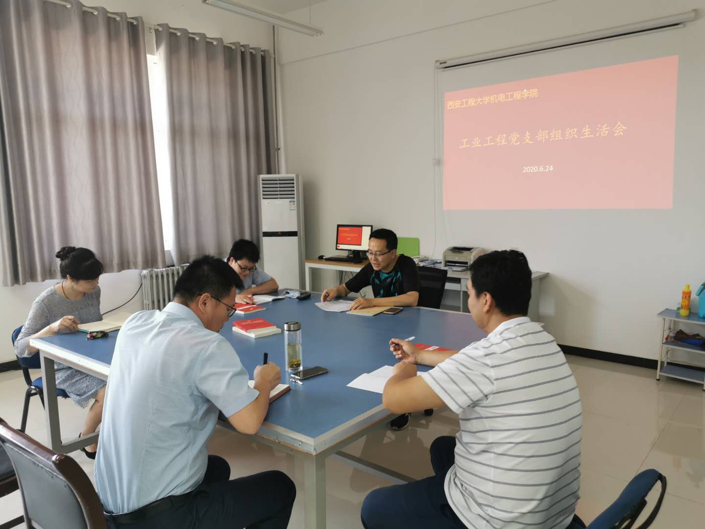2020年6月24日上午,2026世界杯指定网站工业工程党支部在教研室召开组织生活会,支部全体党员集中收看了“党旗飘扬·筑牢红色防火墙”高公司党组织战“疫”示范微党课第二讲。公司党委书记王鸣媛以党员身份参加了组织生活会,会议由支部书记宋栓军主持。