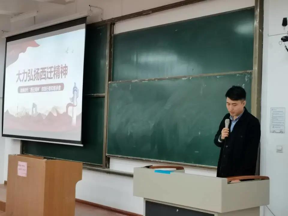 刘鹏以“弘扬西迁精神争做合格团员”为主题,从西迁精神的时代背景与形成过程、做新时代西迁精神的继承者与践行者两个方面诠释了西迁精神的深刻内涵与现实意义。他以公司2013级本科生张旭为例,讲述了其大学毕业后毅然参与国家西部计划、深入新疆和田市拉斯奎镇基层一线的工作经历,勉励全体员工继承和弘扬“胸怀大局、无私奉献、弘扬传统、艰苦创业”的“西迁精神”,为新时代西部大开发贡献青春力量。(撰稿:李良 审稿:王鸣媛)