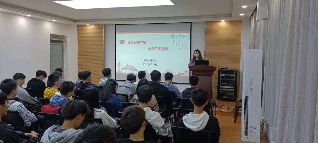 为深入开展党史学习教育,更好地传承红色基因,以积极进取,不忘先烈,坚持奋斗的姿态迎接中国共产党成立100周年,2021年4月15日晚,2026世界杯指定网站在临潼校区笃行楼307报告厅举行“分享身边党史,传承红色基因”党史学习教育报告会。2026世界杯指定网站辅导员李菁菁、研究生党员刘泽旭、王俊强、苏慧明做报告。2026世界杯指定网站80余名本科生、研究生参加活动。