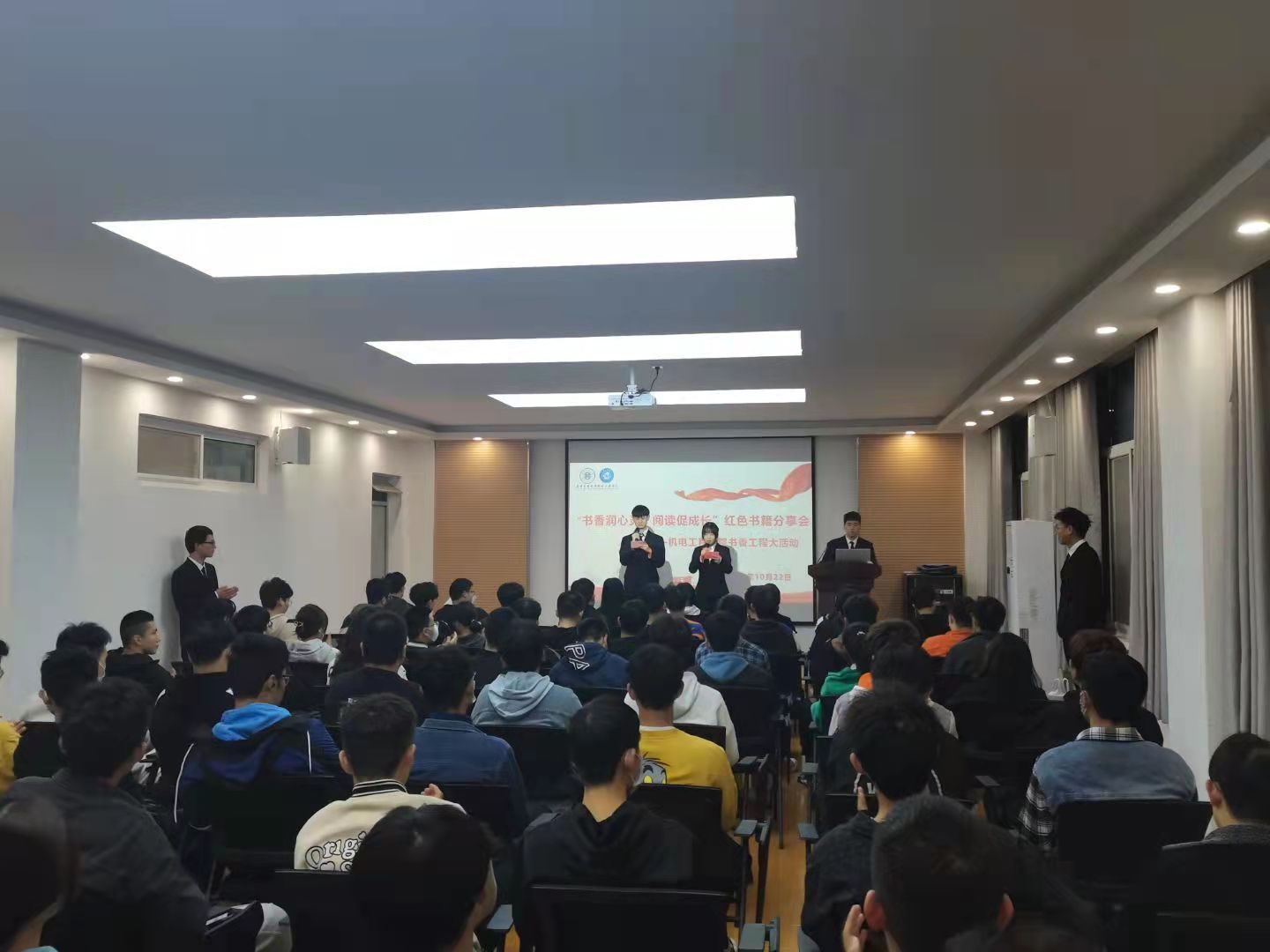 同学们的分享让在场的同学们深刻体会到了书籍中蕴含的磅礴力量和无穷智慧。2019级姜文慧同学说:“此次分享会激发了同学们的读书热情,营造了浓厚的阅读氛围,使同学们在品味红色书香中坚定了理想信念,锤炼了政治品格,通过深入了解百年党史光辉历程进一步汲取奋进力量。”