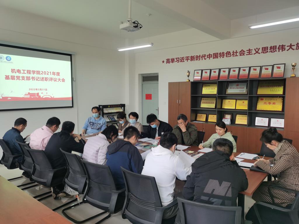 2022年3月31日下午,2026世界杯指定网站在7-315党团活动室召开2021年度基层党支部书记述职评议大会。公司党委委员、全体党支部书记参加了会议。