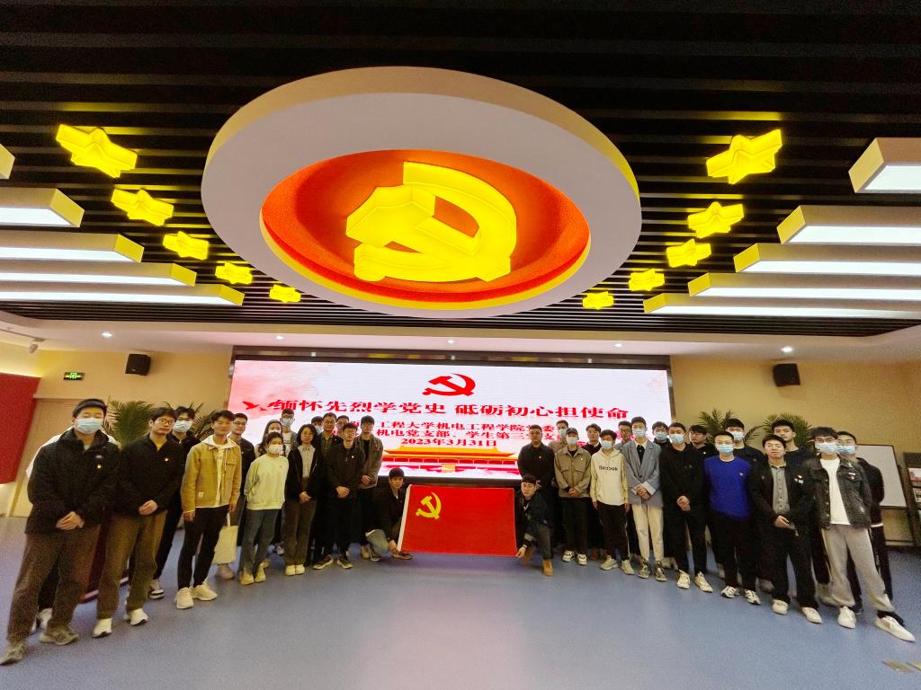 3月31日,支部书记冯翊和秦方刚组织研究生机电党支部和机制员工第三党支部前往碑林区党史学习教育纪念馆开展党史学习教育。党史学习教育纪念馆内,党徽、党旗庄严肃穆、熠熠生辉。通过聆听讲解、参观展览、观看影片,全体党员回顾了中国共产党在艰苦卓绝的革命中不断拼搏、顽强奋斗的伟大历程,学习了革命先烈的英勇事迹,感悟了无私奉献的伟大精神。研究生党员张玮分享了自己的入党故事,认为作为新时代青年党员,应不断提升自己的综合素质,增强自身能力,为实现中华民族伟大复兴的中国梦贡献自己的力量。冯翊带领党员重温入党誓词,激励党员同志不忘初心、牢记使命,永葆党员本色,始终保持昂扬向上的奋斗热情。