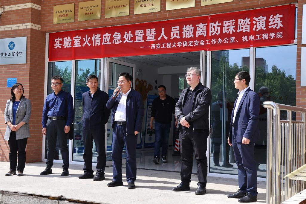 刘鹏刚从前期、中期、后期对演练全过程开展具体指导。他首先了解了机电楼楼况,根据实验室位置、出口分布情况提出针对性疏散方案。演练结束后,刘鹏刚总结情况,做出现场点评,指出此次演练还原度较高,使师生体验到火场的紧迫感,对于提高每位同学的安全意识、提升教师应急处置能力具有重要意义,演练取得圆满成功。刘鹏刚倡议全体师生了解教室、实验室、宿舍等场所安全通道位置,常态化经常化开展演练,以便突发情况下迅速撤离,安全疏散。