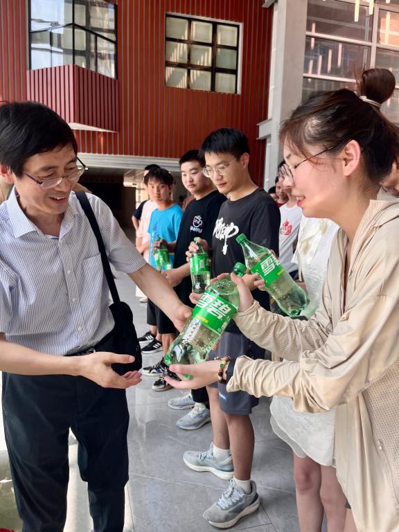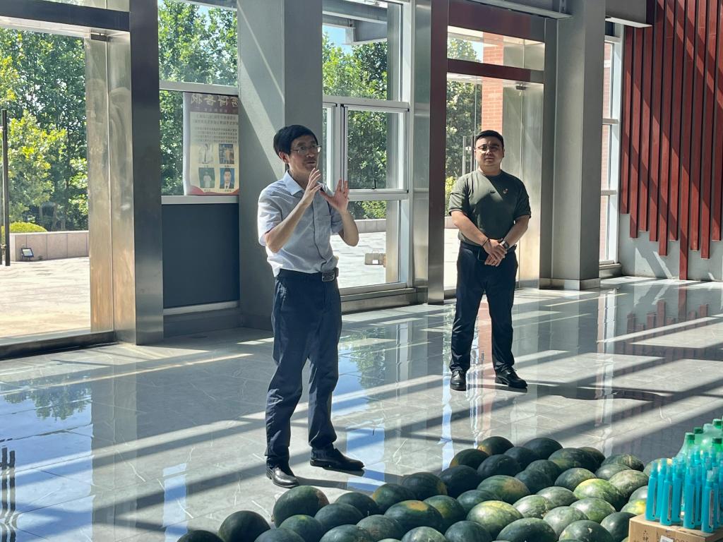 活动现场,老师与同学们进行了亲切的交流,关心同学的话语和同学感谢的表达声不绝于耳。同学们都带着微笑接过了西瓜、花露水、饮料,老师们也向同学们详细了解了他们的学习、生活情况和思想动态情况,鼓励同学们要坚定理想信念、刻苦学习知识、勇于创新创造,以饱满的热情投入到学习中去。