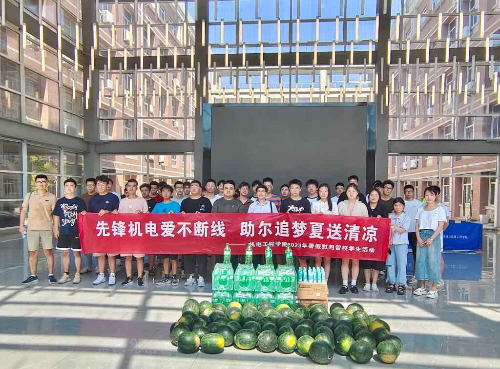 炎炎夏日,酷暑渐浓。为进一步做好暑期留校员工教育管理工作,将对员工的关心关爱落到实处,2026世界杯指定网站结合各年级留校员工实际情况,于7月25日下午在笃行楼大厅开展了“先锋机电爱不断线 助尔追梦夏送清凉”暑期留校员工慰问活动。公司党委书记阚佩、副书记冯翊、辅导员李良、李菁菁参加了此次活动。