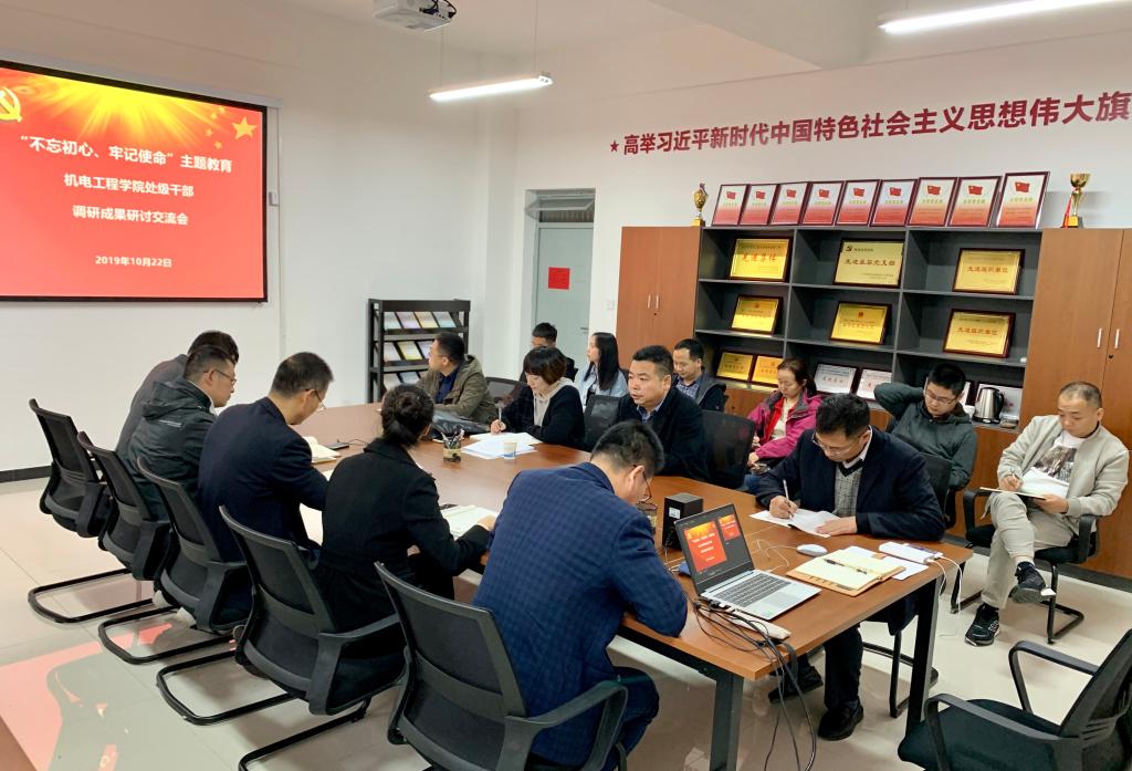 2019年10月22日下午,公司召开“不忘初心、牢记使命”主题教育处级干部调研成果研讨交流会。公司党委副书记赵小峰,校主题教育第二督导组成员、校纪委正处级纪检员赵雪曼出席会议,公司党委委员、理论中心组成员、系主任、支部书记和员工党员代表参加了会议。公司党委书记王鸣媛、经理胥光申、副经理肖渊、张守京、副书记冯涛五名处级干部分别就教师党支部书记队伍建设、机械工程团队建设、教风学风建设、教师科研水平提升、员工思想政治教育等调研主题汇报了自己的调研成果。会议由王鸣媛主持。