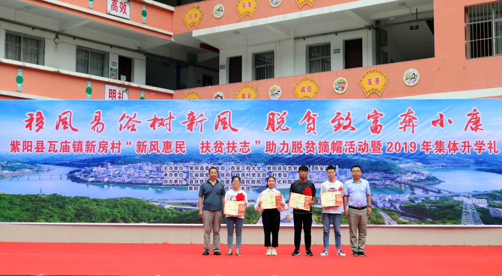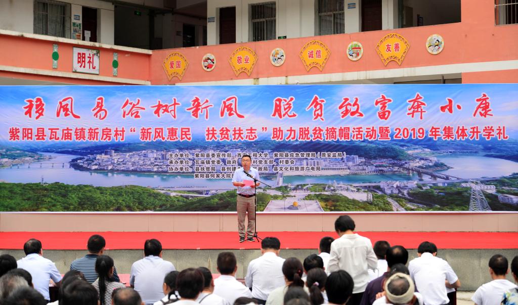 赵小峰一行参加了驻村联户新房村举办的“移风易俗树新风 脱贫致富奔小康 紫阳县瓦庙镇新房村‘新风惠民 扶贫扶志’助力脱贫摘帽活动暨2019年集体升学礼”,为“新民风模范家庭”和即将入学的老员工颁发了荣誉证书。活动结束后,赵小峰一行走访慰问了新房村贫困户,和他们拉家常、问冷暖、送上生活物品,同时鼓励他们要树立脱贫的信心、扎实发展产业,早日脱贫致富。