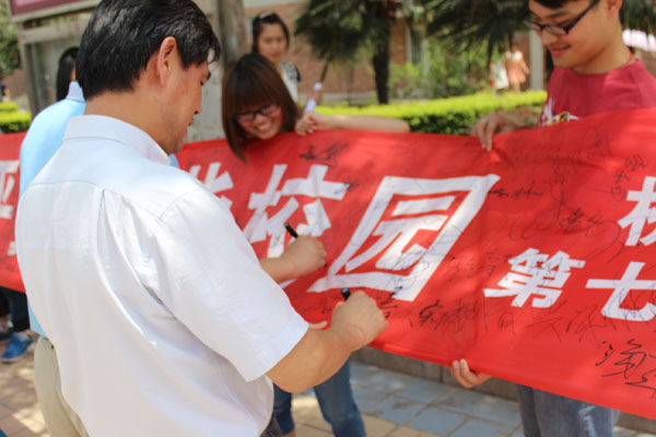 活动以发放传单、横幅签名的形式开展,让同学们了解自身周围存有的安全隐患,在遇到安全问题时应当如何正确处理,号召同学们学会自防、自护、自救。天气虽然炎热,但同学们了解安全知识的情绪高涨积极。