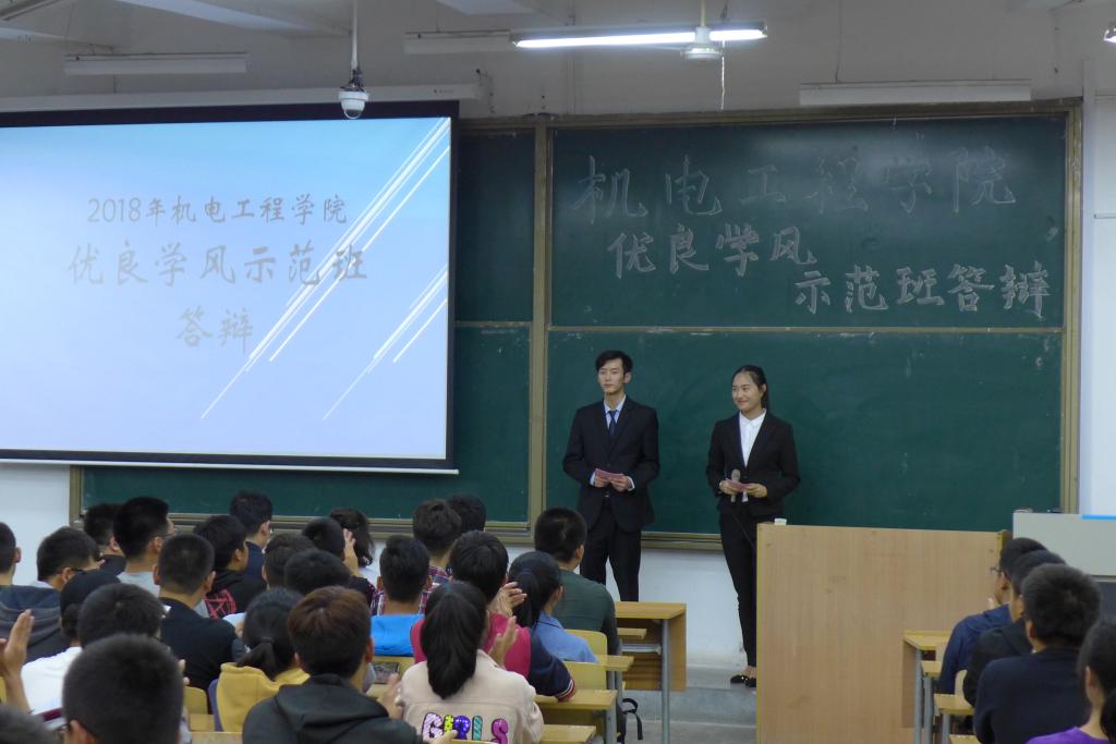 活动伊始,首先,由冯涛致开幕词,冯老师对优良学风示范班的内涵进行了全面的阐释,鼓励并督促全体同学加强班集体建设,珍惜学习机会,为营造积极和谐的班集体氛围贡献力量。随后,各答辩班级代表围绕学风建设,结合专业优势,从班级建设、优良学风创建成果和校园文化活动等多方面进行了精彩的展示。参加答辩的班级员工代表感情充沛、条理明晰,充分展示了班级团结互助、积极进取的良好氛围。一段段视频、一张张照片,记录着班级从大一认知转变到大二拼搏进取再到大三硕果累累。答辩结束后,黄超、杜静分别进行了总结点评,他们在充分肯定了各班学风建设所取得的成果之外,也如实指出了各班级存在的问题,并提出了相应整改建议,他们希望全体同学要以本次学风示范班评比为契机,努力奋进,共同营造和培育良好的班风和学风。最后,通过评委老师现场打分、一致推荐,2017级过程装备与控制工程一班从参选班集体中脱颖而出,成为公司“优良学风标兵班”。(黄超)