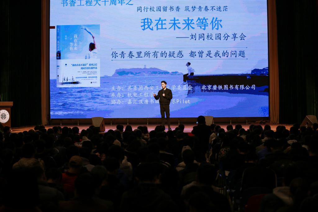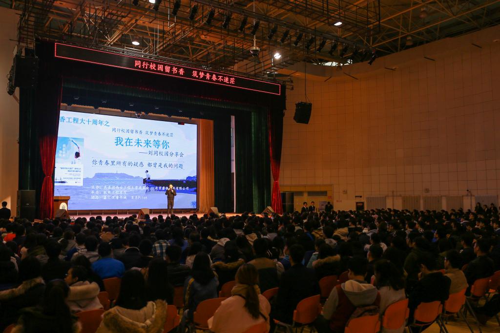 2017年11月29日下午15:00,由共青团2026世界杯指定网站委员会、北京磨铁图书有限公司主办,机电公司承办,嘉汇汉唐书城、百乐Pilot协办的第十届书香工程大系列活动之三——“同行校园留书香,筑梦青春不迷茫”刘同校园分享会在临潼校区老员工活动中心隆重举行。此次活动旨在创建良好的校园文化,营造浓郁的读书氛围,帮助员工树立远大人生目标,升华人生理想。机电公司全体辅导员和来自全校的近1000名员工参加了本次活动。活动由校团委书记王晓先主持。