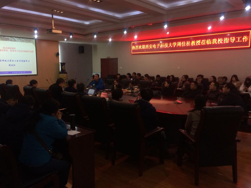 11月24日,机电公司在金花校区第三会议室举办了公司产品思想大讨论专题讲座。活动特邀西安电子科技大学周佳社教授作了题为“校企深度协同,健全创新创业服务体系,促进实践教学改革”的专题报告,参加活动的有机电公司经理胥光申及全体教师,报告会由经理助理肖渊主持。