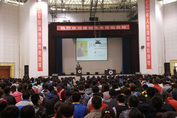 唐骏先后担任微软全球技术中心总经理,微软中国公司总裁,盛大网络总裁兼CEO,新华都总裁兼CEO,港澳资讯董事长兼CEO。他是微软公司历史上唯一两次获得比尔盖茨杰出奖,唯一一个获得微软中国终身荣誉总裁称号的员工。讲座中,唐骏根据自己的职场经历,介绍了在职场生涯中如何“超越平凡,超越自我”,并谈了自己对于人生的理解和感悟。他特别就“年轻人如何选择职业,如何在初入职场后获得良好的发展”、“如何战胜困难,挑战自我”、“如何抓住机遇,没有机遇时如何创造机遇”、“经历不能复制,但做事的方式和理念可以借鉴,做人简单,做事勤奋”等现场同学们关心的问题做了精彩阐述。唐骏认为:职场最重要的生存法则就是简单、勤奋和沟通,作为职业经理人,最重要的是保持良好的心态。