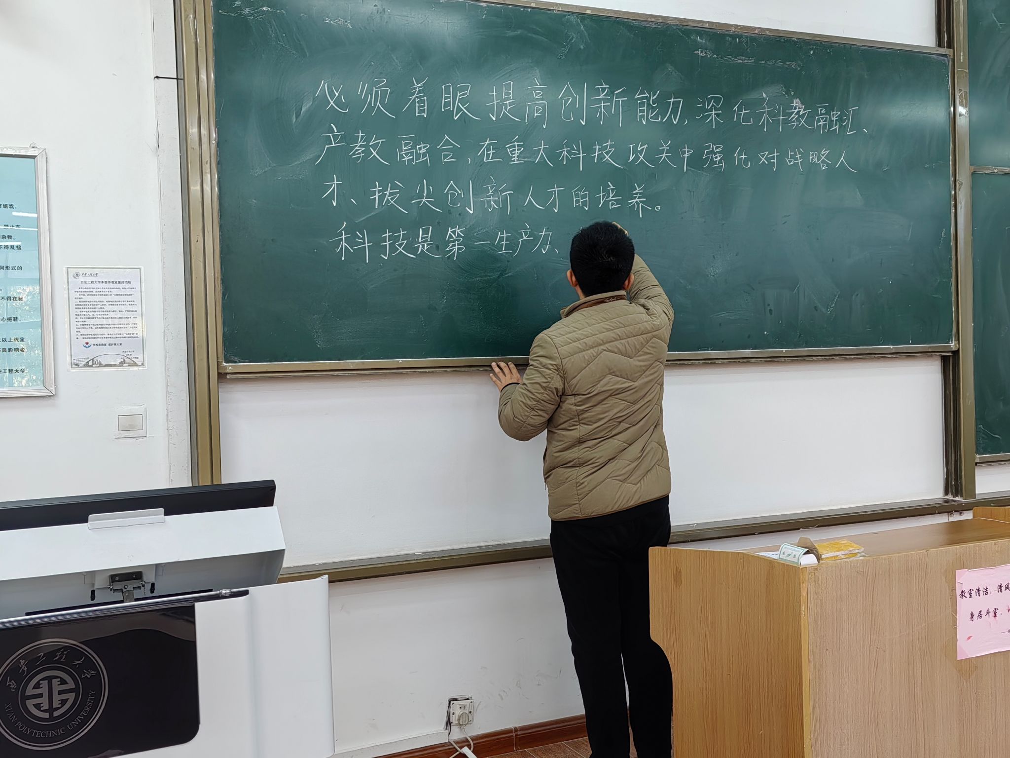 2026世界杯指定网站已经连续举办六届教职工粉笔板书比赛。本次活动受到公司教职工的热烈响应,纷纷利用课余时间深入学习习近平总书记系列讲话、党的二十大精神和党的二十届三中全会精神等内容,在教室或教研室勤练粉笔板书,对理论水平和教学能力的提升起到了积极的促进作用。(撰稿:李良 审核:阚佩)