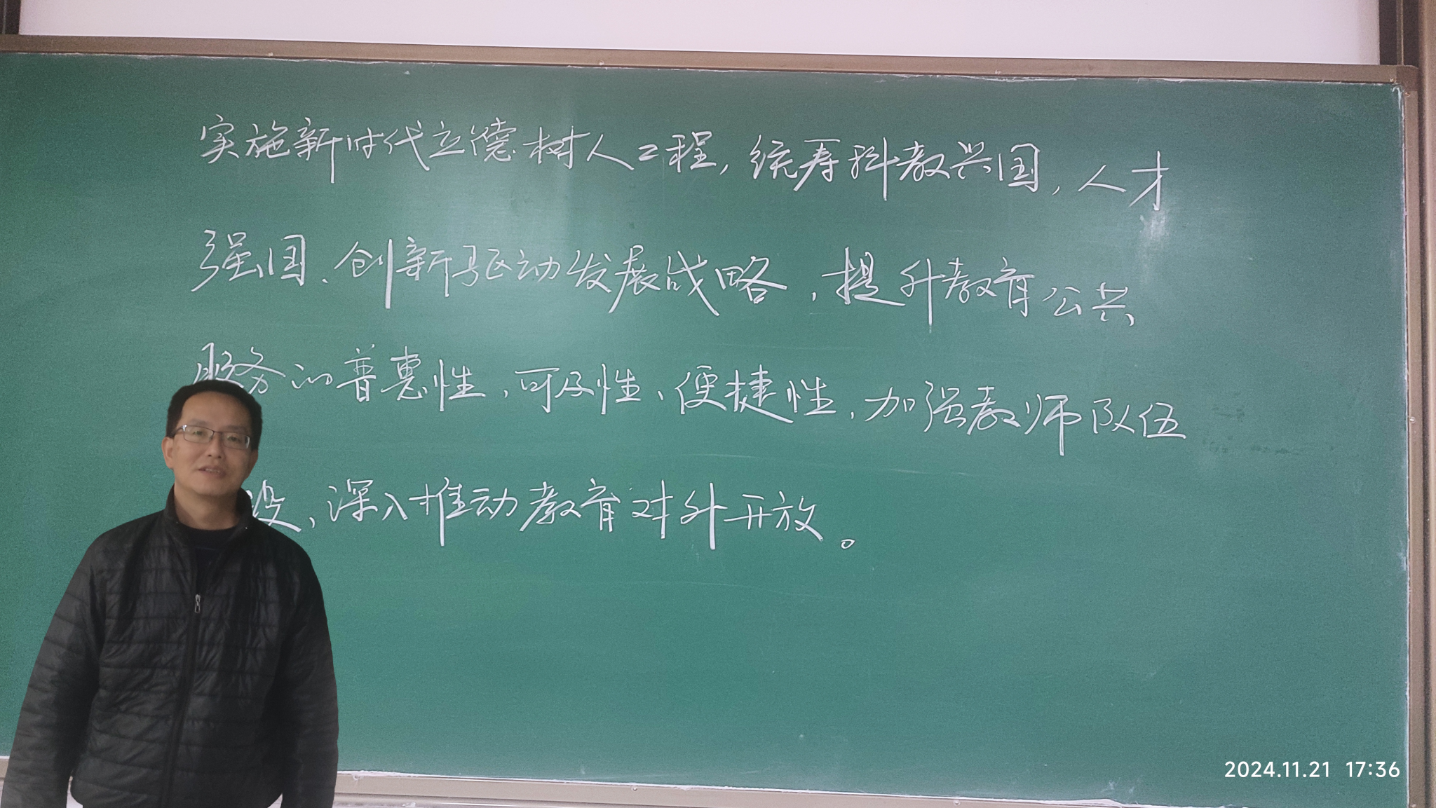 为学习贯彻党的二十届三中全会,深入领会习近平总书记在全国教育大会上的讲话精神,推动“四个回归”落实,11月21日,公司举办“担育人使命 书时代华章”第六届教职工粉笔板书比赛。