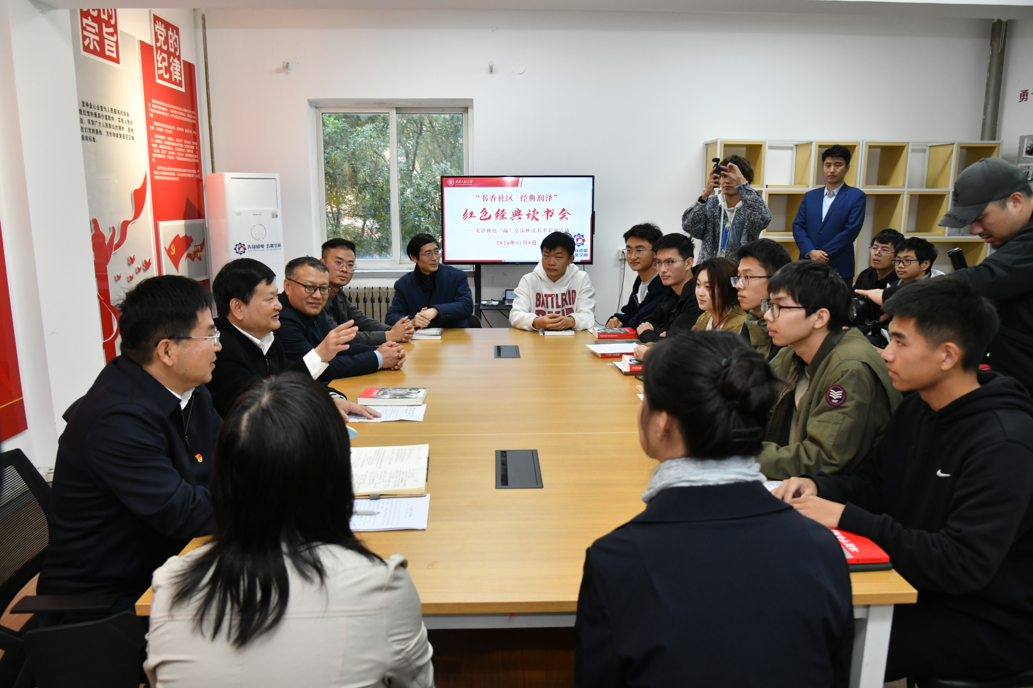 据悉,“羽翮堂”书屋致力于营造“人人乐读书,人人好读书、人人善读书”的书香氛围,为“一站式”员工社区文化赋能做出贡献。此次“书香社区经典润泽”红色经典读书会之“‘阅’享深秋”读书季系列活动是机电公司党委深入学习贯彻党的二十届三中全会精神和认真落实《高校“一站式”员工社区综合管理模式建设提质增效指南》的具体实践,公司将以“一站式”员工社区“羽翮堂”书屋为阵地,实现社区书屋开放式的零距离阅读共享,构建浓厚良好的社区特色文化,完善社区文化育人体系,让员工在社区文化的浸润中成长成才。