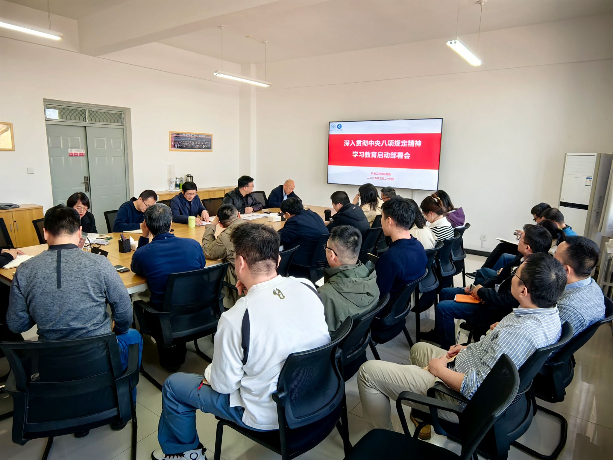 3月24日,公司党委召开深入贯彻中央八项规定精神学习教育启动部署会,公司领导班子成员、党委委员,党支部书记、系(部)教研室主任等参加了会议。会议由公司党委书记阚佩主持。