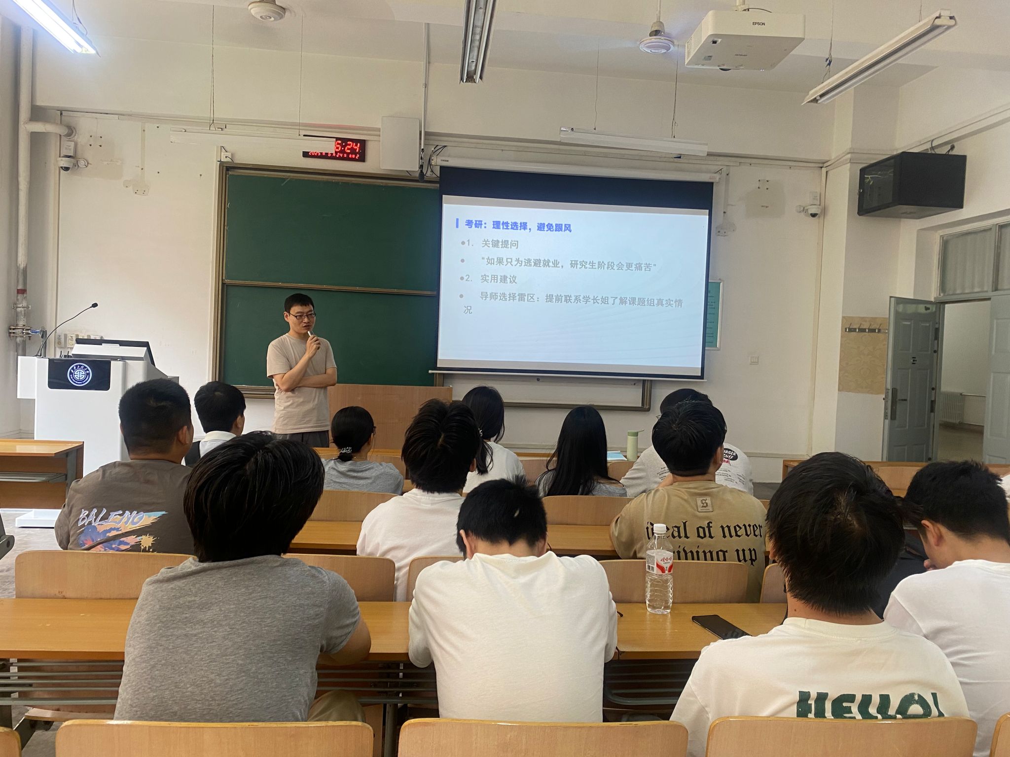 班会上,同学们一起回忆了大学四年的美好生活,军训时挥洒汗水的坚毅脸庞、课堂上专注求知的眼神、实验室里反复调试设备的身影、校园活动中绽放的灿烂笑容一一闪过,勾起大家的满满回忆。互动环节,毕业生踊跃发言,有人分享大学期间最难忘的收获,有人倾诉对老师和同学的不舍,也有人畅谈对未来职业和生活的规划。毕业生张佳慧感慨:刚入校时,我对专业懵懵懂懂,是老师们的悉心教导、同学们的热情帮助,让我找到了方向,学会了成长,真心感谢公司这个温暖的大家庭!