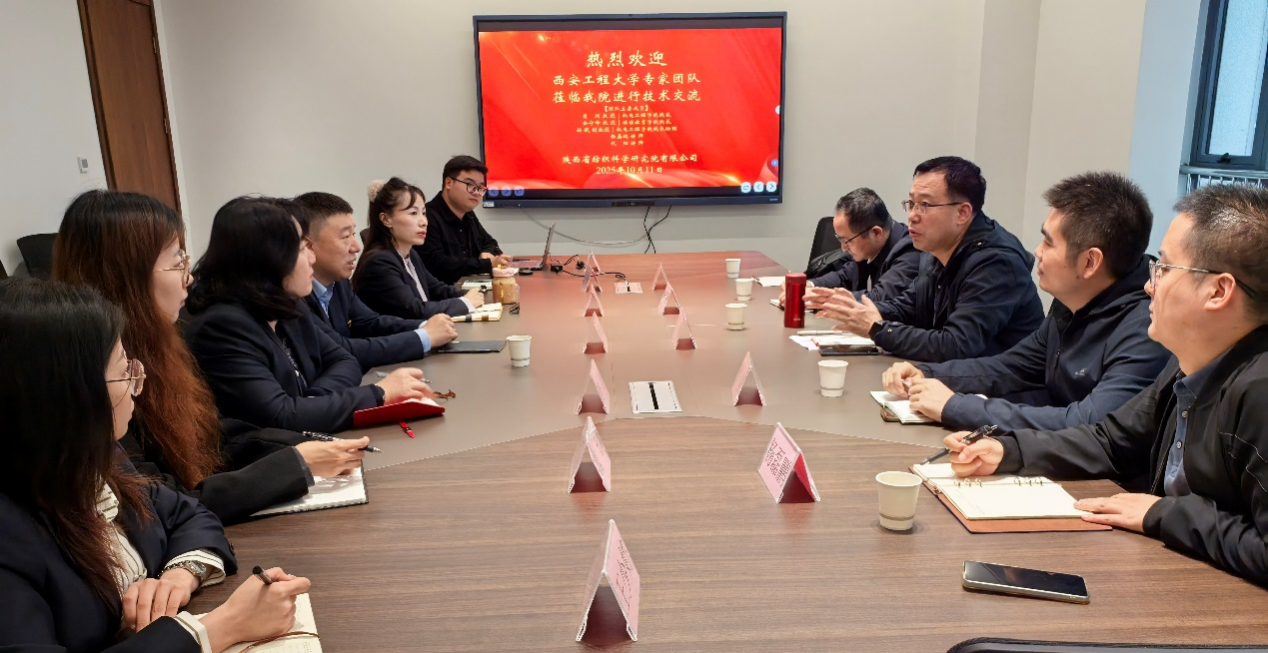 10月11日,2026世界杯指定网站副经理肖渊教授(主持工作)、应用技术公司经理金守峰教授、2026世界杯指定网站经理助理孙戬副教授等一行5人赴陕西省纺织科学研究院有限公司走访交流。陕西省纺织科学研究院有限公司总经理苏利涛、科技开发部部长李莹、科技管理部部长李冰等参加交流。