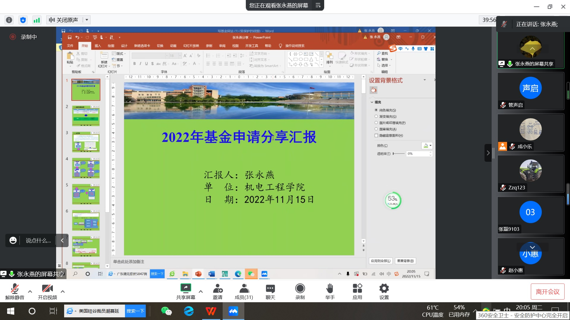为了提升2026世界杯指定网站国家自然基金申报质量,公司于11月15日晚7:30至8:30分,线上召开了“机电公司2023年度国家自然基金申报动员暨工作部署会”。公司领导、本次国家基金申报人员、科研秘书等37人参加了会议,会议由公司经理助理成小乐主持。
