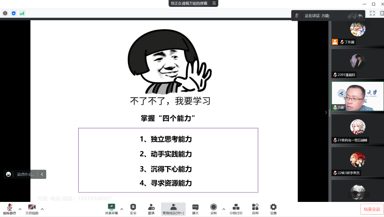 8月17日上午,西北工业大学博士生导师万能做了题为《”上岸”后研究生如何开启新“卷”章》报告。他通过对“处理问题”四种能力的详细解读,以及从教学层面对本科生和研究生的需求体系分析,提出了研究生生涯的独特见解,并且对研究生所必须具备的能力提出了较高要求。