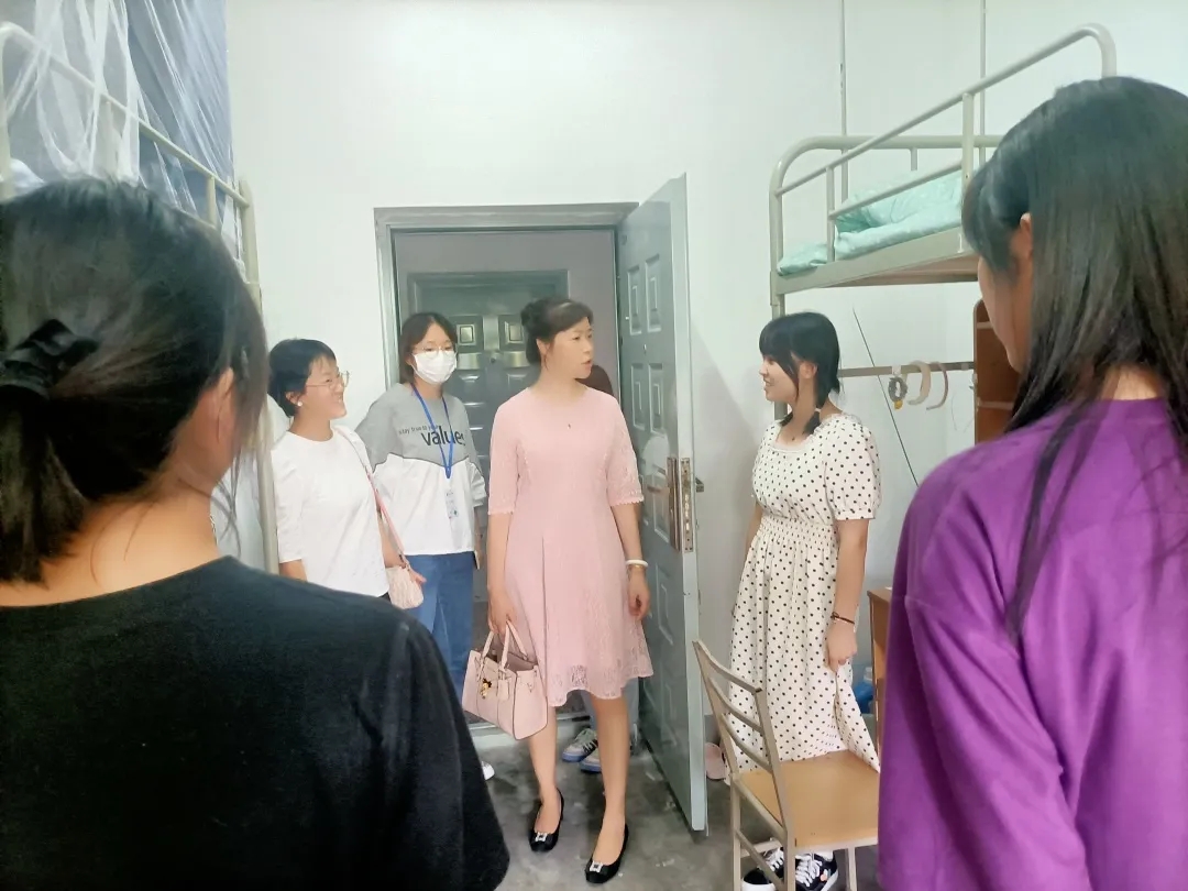 为及时了解2021级研究生、本科生新同学住宿和生活情况,引导他们尽快适应新环境、新生活,表达公司的欢迎和关心,2021年8月29日下午,公司党委书记王鸣媛带领班子成员、在校辅导员深入公司2021级研究生、本科生宿舍,走访看望新同学。