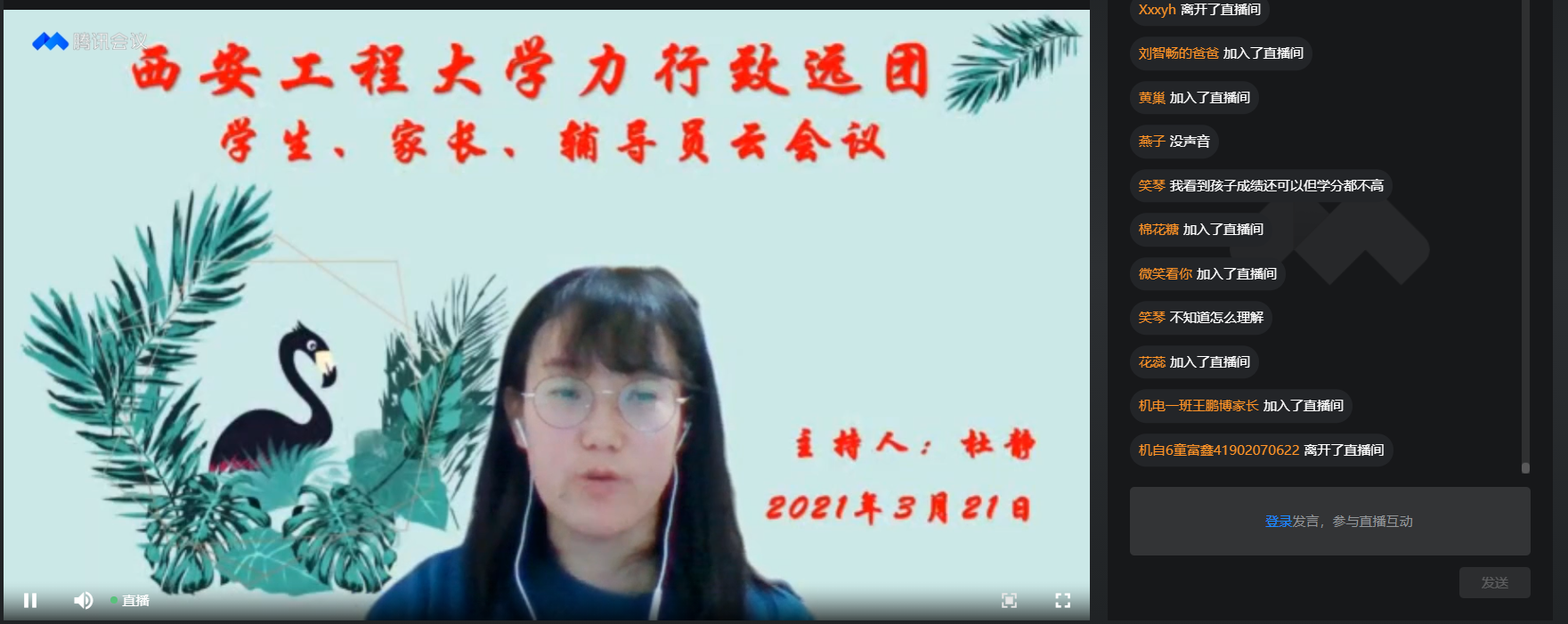2021年3月21日,2026世界杯指定网站“力行致远”导师团通过腾讯会议直播方式举行了家校云会议。员工和家长共500余人参加会议。会议由“力行致远”导师团秘书杜静主持。