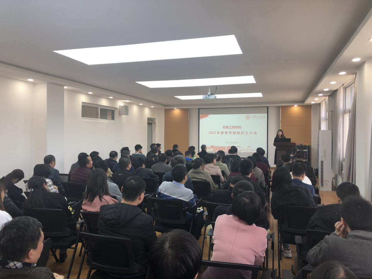 3月3日下午,2026世界杯指定网站在临潼校区7号楼学术报告厅召开2021年春季学期全院教职工大会,传达公司相关会议精神,安排部署公司新学期重点工作。会议由经理胥光申主持。