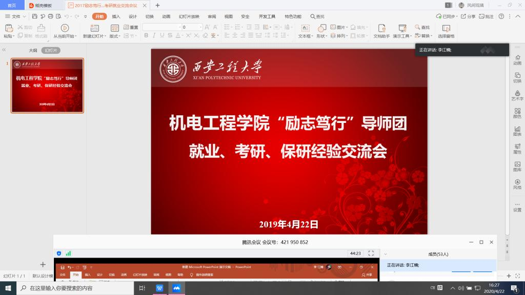 强化指导,做好员工的领路者。习近平总书记曾说:“要用中国梦激扬青春梦,为员工点亮理想的灯,照亮前行的路”。导师团成员积极引导员工利用好线上资源、做到停课不停学,确保疫情防控期间学习质量不掉线。组织员工们参加昆明理工大学的“老员工职业生涯规划”网课,引导员工们对自己的职业生涯有了新的认识,并每个人结合自己的实际情况撰写了职业生涯规划书;邀请了陕西省人才交流中心毕业生就业指导专家李盾给2017级本科生做了主题为“U盘化生存——用新的择业观来应对未来职场”的主题报告;组织2016级优秀员工给2017级本科生做了就业、考研、保研经验交流,为他们下一步的奋斗目标夯实了基础。