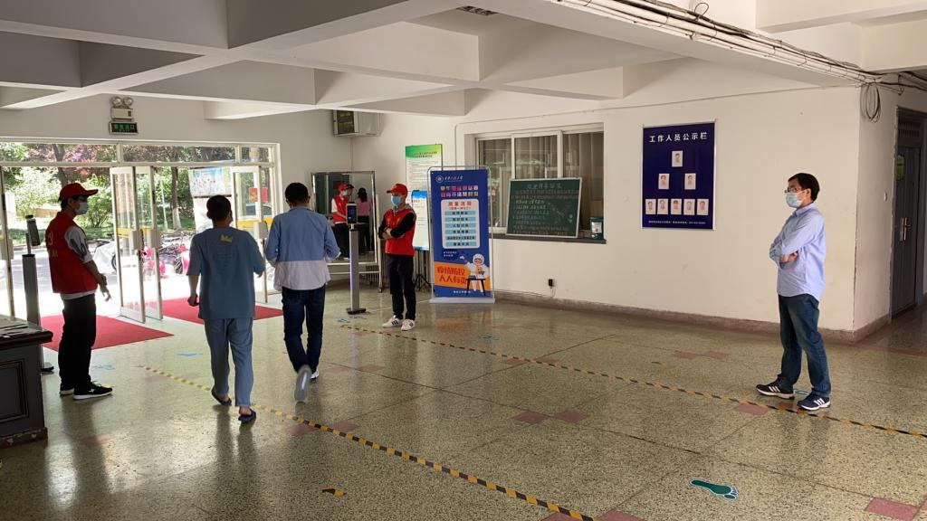 初夏时节,绿意盎然,自本科毕业生返校复学以来,工程大临潼校区恢复了生机和活力,同时还多了一道亮丽的风景——“红马甲”党员先锋岗,他们是机电公司疫情防控的一支重要力量。“疫情当前,党员先行”,机电公司党员先锋岗由30多名教工党员和108名员工党员组成,由公司党委统一指挥,分别在1号、5号和9号宿舍大厅进行晨午检督导,在错峰就餐场所维持秩序,同时帮助毕业生明晰在校防控流程、正确掌握疫情防控科学对策,为公司严格执行复学后的点对点闭环管理,筑牢疫情“防控墙”增强了防控力量。师生党员与辅导员、本科生毕设导师、研究生导师等密切联动,耐心指导员工做好返校复学和健康排查工作,在全面落实联防联控措施、构筑群防群治严密防线过程中发挥了党组织的战斗堡垒和先锋模范作用,使党旗在疫情防控一线高高飘扬。