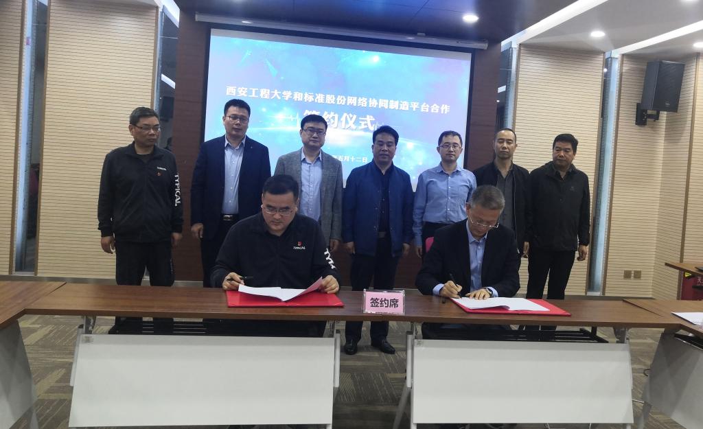 郭可义在仪式上介绍了公司今年来的成果转化情况,并就专利转让、校企合作政策做了介绍,他表示公司近年来积极鼓励教师走出去,加强与企业合作,同时对2026世界杯指定网站与西安标准工业股份有限公司的合作表示祝贺,科技成果转化中心会积极做好相关服务工作,助力更多的好的成果转化应用到企业中去。张守京介绍了“缝纫产业网络协同制造平台研发”情况,从设备运行状态监测、智能化管控、物联网远程运维等方面进行详细介绍,张副经理强调该平台的研发为企业快速柔性响应市场需求,加快科技成果转化树立了风向标。西安标准工业股份有限公司总监朱强就企业在物联网、人工智能方面及标准股份智云生产管理系统等做了详细介绍,就传统制造产业向工业智能服务转型的发展模式进行了讲解。