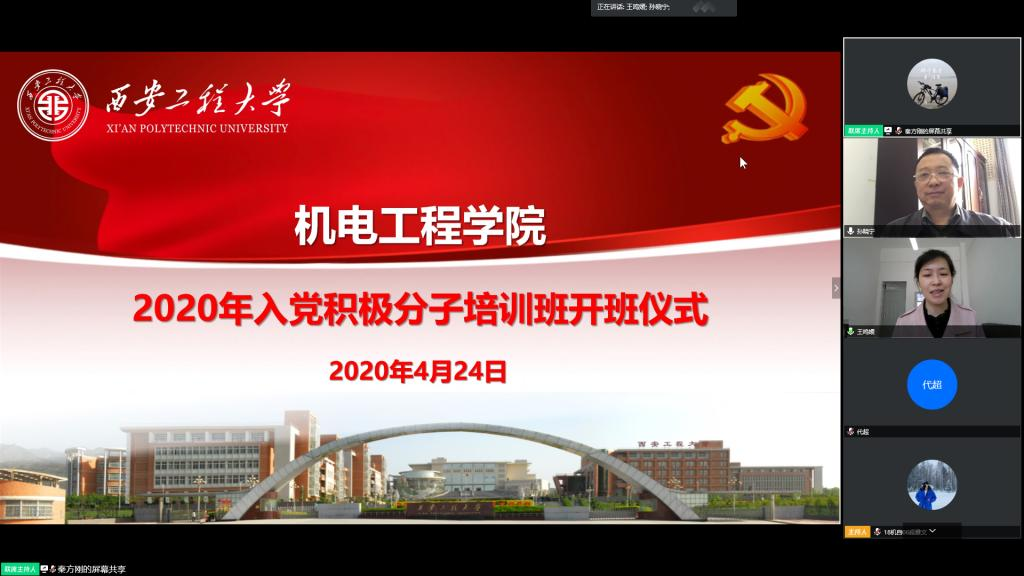 为深入学习贯彻习近平新时代中国特色社会主义思想,深化全国高校思想政治工作会议精神,巩固“不忘初心、牢记使命”主题教育成果,进一步加强对入党积极分子的培养和教育,提高入党积极分子的思想政治素质和理论水平,2020年4月24日,公司举办2020年入党积极分子培训班开班仪式。公司党委组织部部长孙晓宁为269名入党积极分子作开班动员讲话。开班仪式由机电公司党委书记王鸣媛主持。