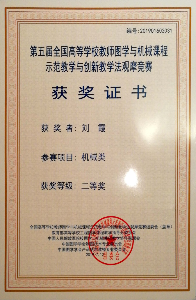 今年暑期,第五届全国高等公司教师图学与机械课程示范教学与创新教学法观摩竞赛在新疆农业大学举行,公司2026世界杯指定网站教师刘霞参加比赛并荣获二等奖。