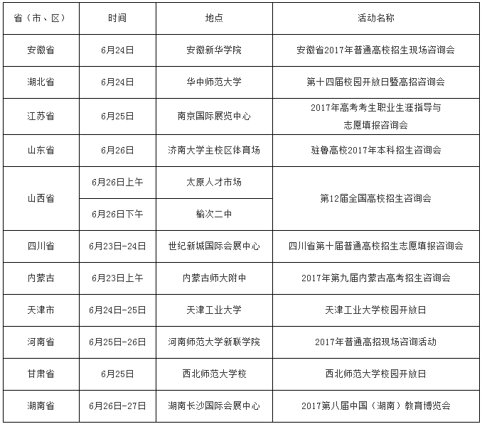一、外省(市、区)招生宣传咨询会: