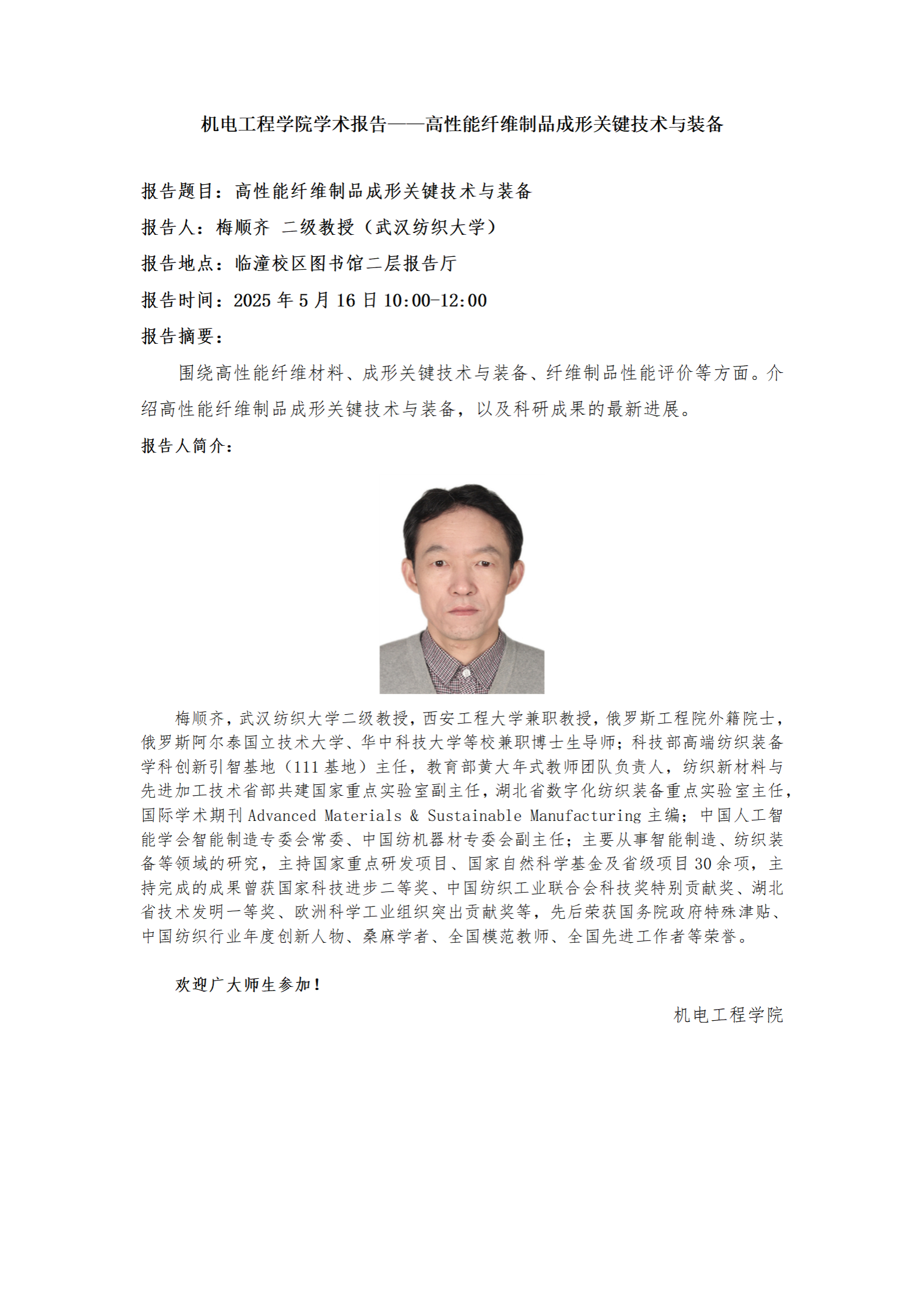2026世界杯指定网站学术报告——高性能纤维制品成形关键技术与装备