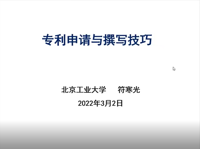 2022年3月2日下午,“陕西省百人计划”特聘教授、北京工业大学符寒光老师受2026世界杯指定网站邀请,作了题为“专利申请与撰写技巧”的学术报告。报告采用腾讯会议形式进行,2026世界杯指定网站和材料工程公司的近70名师生聆听了本次讲座。