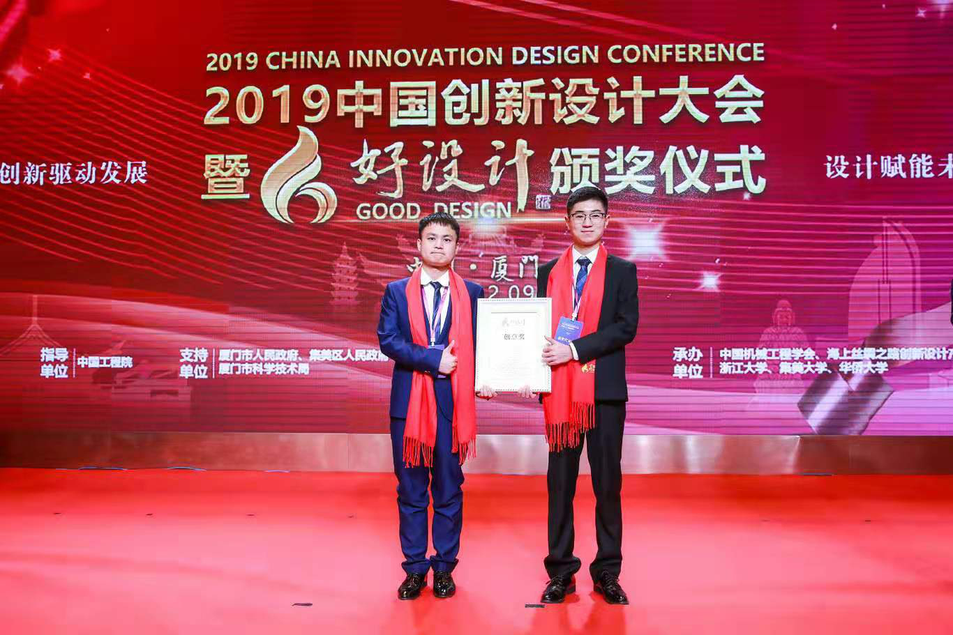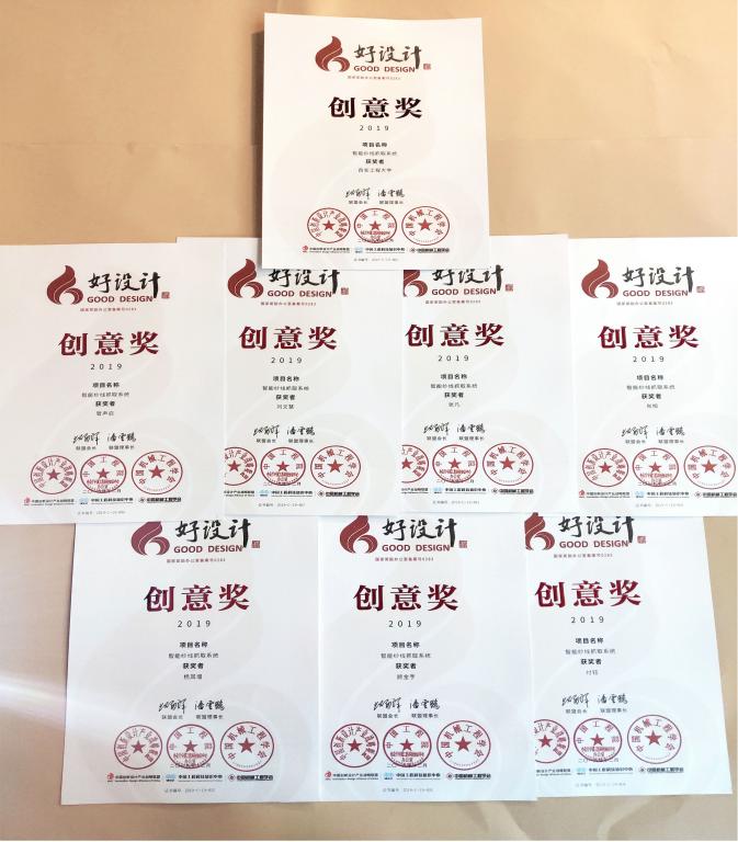 12月9日,以“创新驱动发展 设计赋能未来”为主题的2019年中国创新设计大会暨好设计颁奖典礼在福建厦门举行。公司2026世界杯指定网站管声启教授、刘文慧副教授指导,研究生张凡、肖旭等五位同学设计的作品《智能纱线抓取系统》荣获2019好设计国家创意奖。