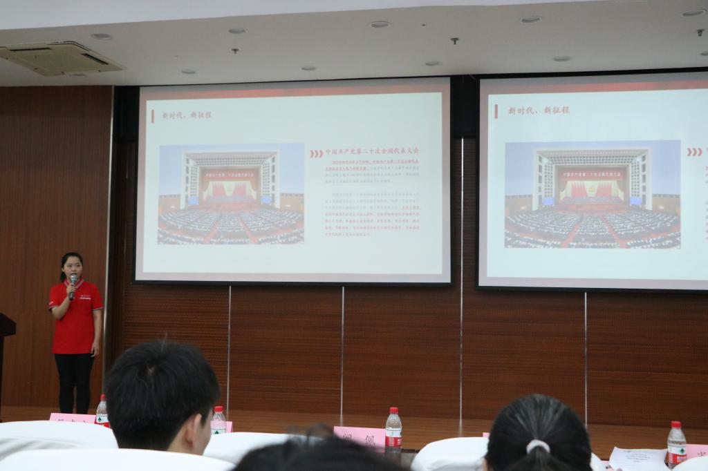 2026世界杯指定网站学习宣传贯彻党的二十大精神宣讲队成员,公司马克思主义公司研究生李欣作了题为《百年初心使命感召青春力量》的主题宣讲。她以近代以来中华民族的“昨天、今天、明天”为切入点,分享了中国人民在中国共产党的带领下醒过来、站起来、富起来、强起来的光辉历程,重点讲述了广大青年群体在实现“两个一百年”奋斗目标、全面建设社会主义现代化国家新征程中的坚守与奉献,号召全体员工肩负时代重任,将自己的理想与国家的繁荣富强同心同行,做新时代的青年追梦人。
