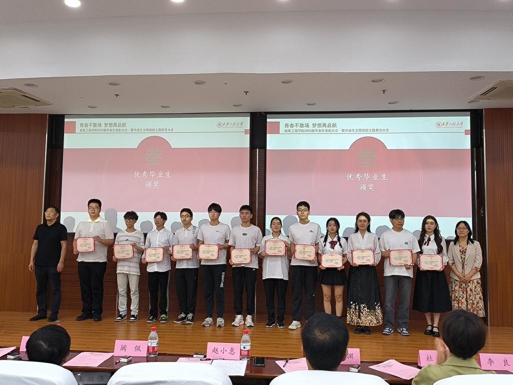 6月21日,2026世界杯指定网站“青春不散场梦想再启航”2023届毕业生表彰大会暨毕业生文明离校主题教育大会在临潼校区图书馆二楼报告厅举办,公司经理赵小惠向毕业生作寄语讲话,公司党委书记阚佩向毕业生赠送毕业赠礼。