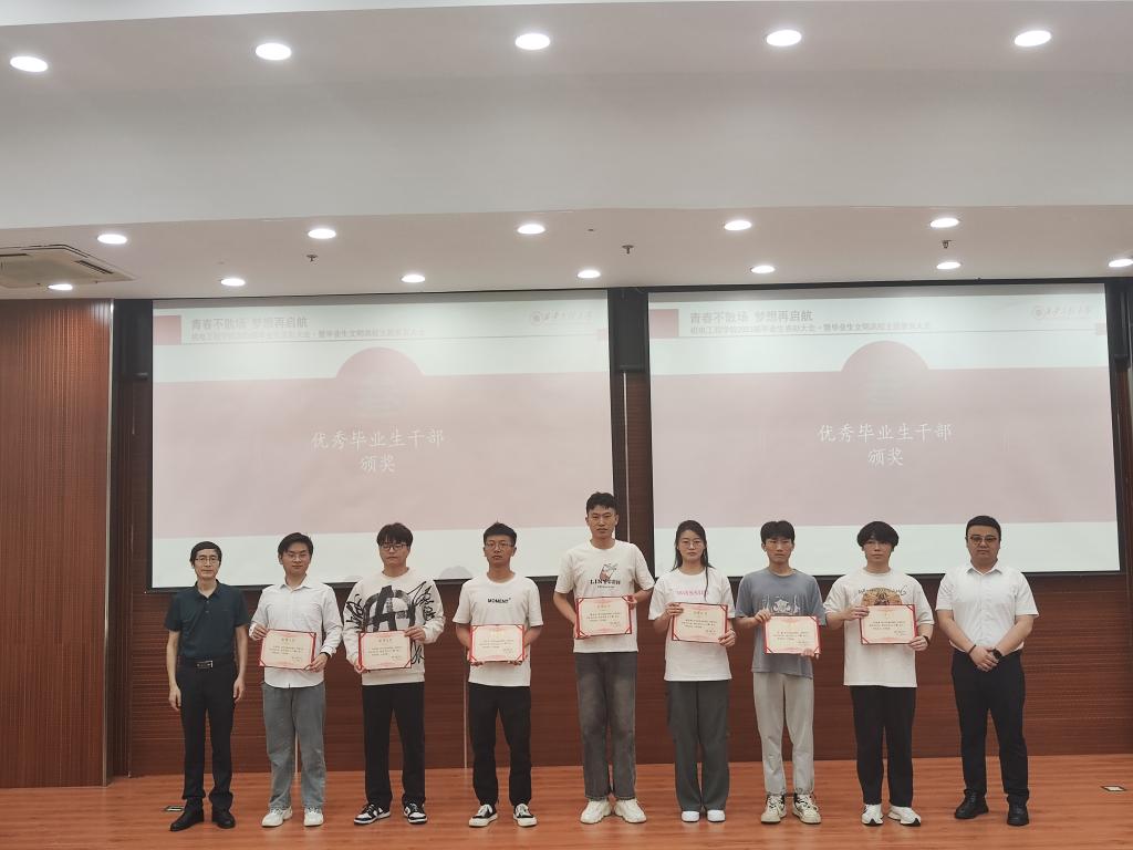 优秀毕业生代表过程装备与控制工程1901班蔡雨辰、优秀毕业生干部代表机械设计制造及其自动化1904班陈馨乐分享了他们的学习成长经历,对母校的培养表示感谢,号召全体毕业生饮水思源,谨记“厚德弘毅 博学笃行”的校训,在新征程上砥砺前行,力争为母校增光添彩。
