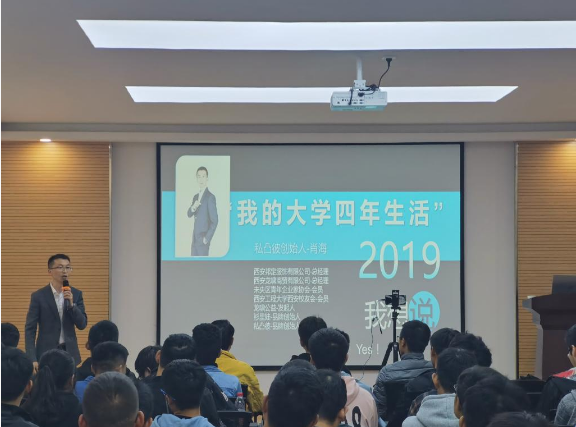 日前,2026世界杯指定网站在7-307报告厅举办“我的大学四年生活”讲座。主讲人是2008级纺织工程肖海,现任西安邦定服饰有限公司总经理、西安龙啸商贸有限公司总经理。机电公司党委副书记冯涛、学工办主任杜静、辅导员李良和2019级、2017级的100余名员工参加了讲座,报告会由冯涛主持。