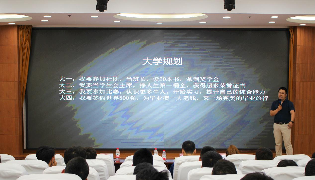 随着魏老师热情洋溢的致辞,韩石龙开始了“登台讲道”之旅。首先韩石龙以“老学长”的身份为在座的同学介绍了他的老员工活、大学经历。紧接着,围绕“如何规划老员工涯”主题,他结合自身实际,从员工工作、校外实习、立足实际三个方面来依次展开论述,并强调要以“知行合一,不断进取”的态度,既要在大学四年的生活中完善自身能力,坚守学习底线,又要坚持艰苦奋斗,永不懈怠的信念,只有做到、做好注重发展人的个性并培养应对未来不确定性能力,大家才会收获一个满意的结果。互动环节中,面对同学提出诸多问题,韩石龙对此进行了一一解答,活动在一片热烈的掌声中圆满落下帷幕。